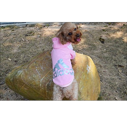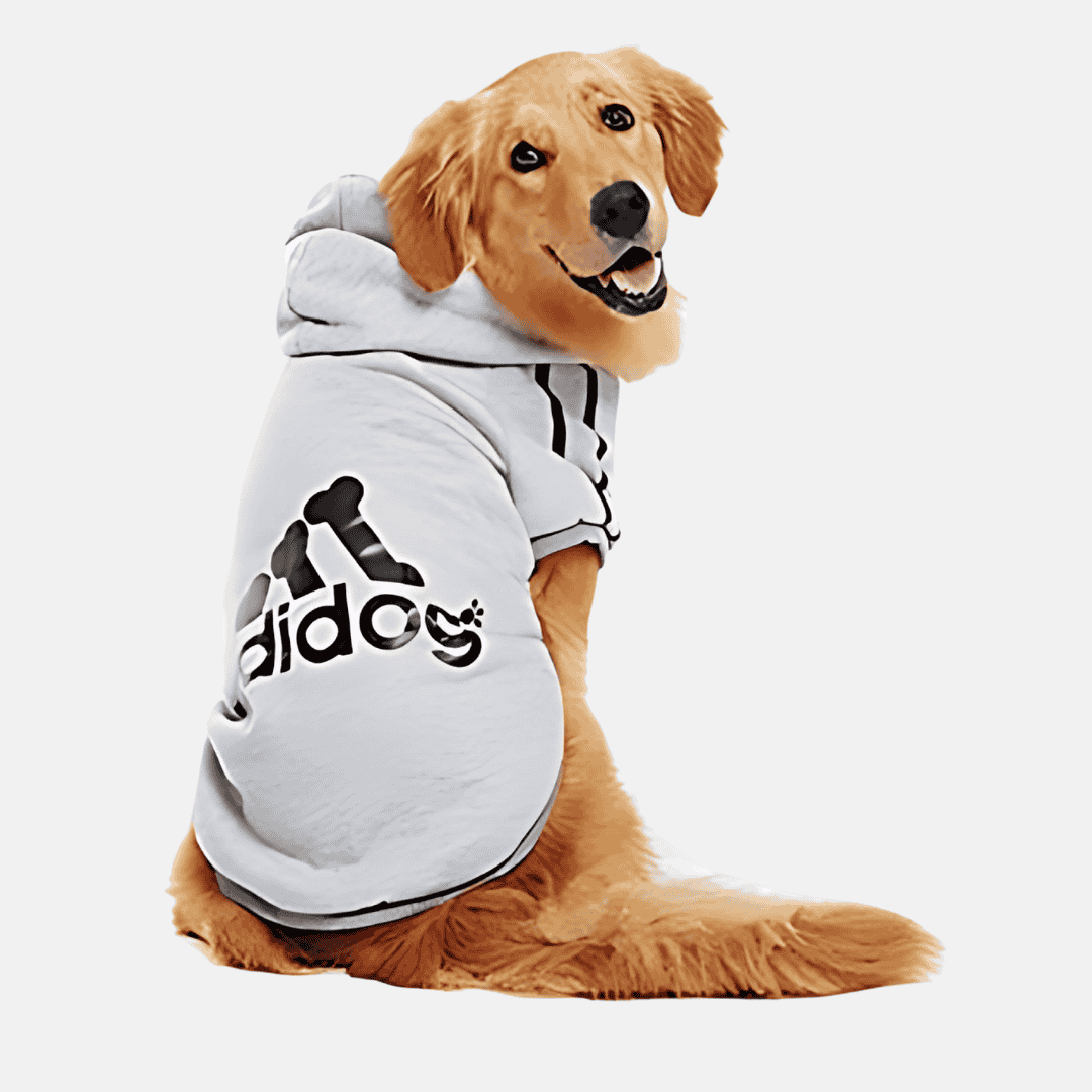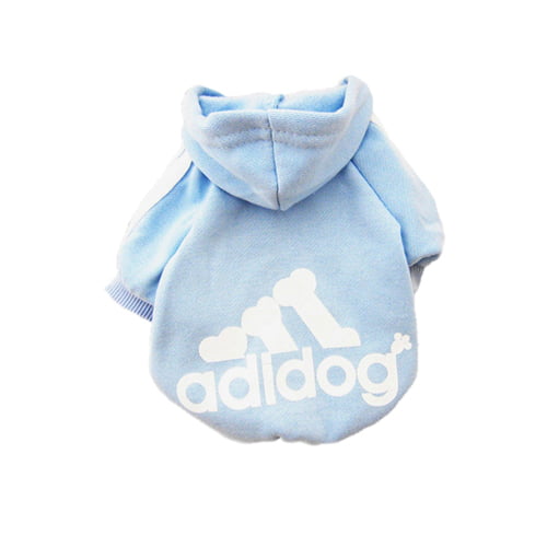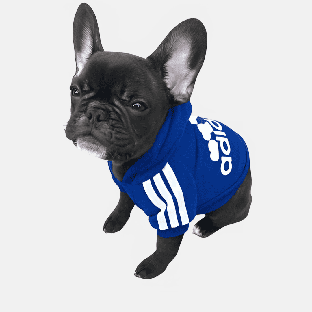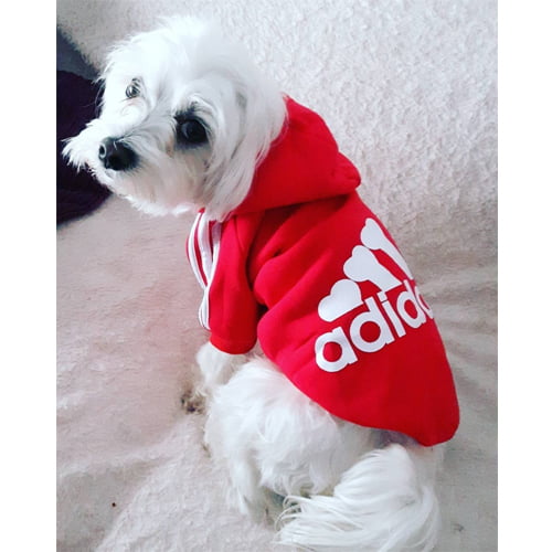 Kul og behagelig hettegenser for hund med Adidog-print på ryggen og klassiske striper ned forbena. Finnes i flere farger. Bør ikke brukes i regnvær.
