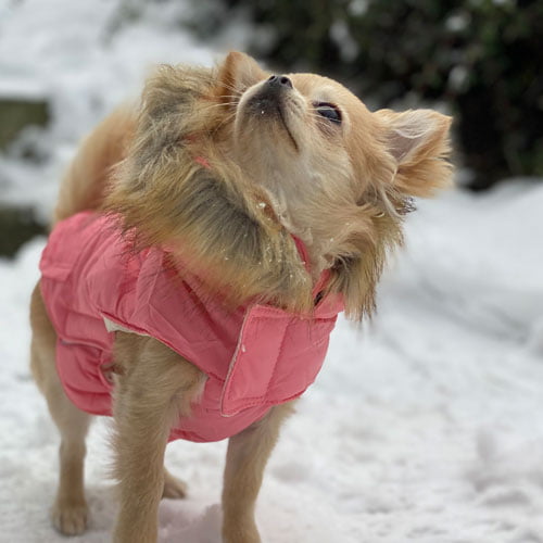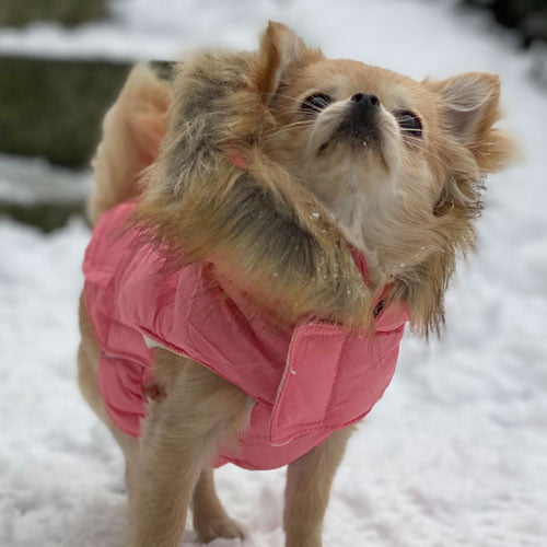 Fôret boblejakke med avtakbar hette som holder hunden din varm og enda søtere, om mulig.