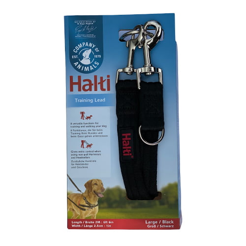 Man får best kontroll om man bruker Halti sitt treningskobbel/bånd sammen med Halti Optifit eller Halti antitrekk-sele.