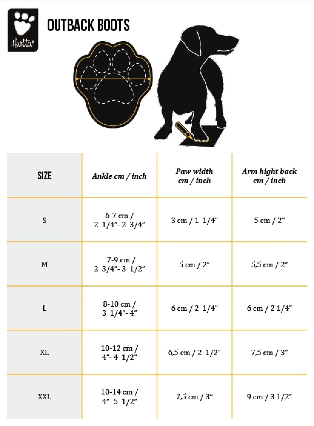 De værbestandige Outback-støvlene beskytter hundens poter under vanskelige forhold og krevende uteaktiviteter. Potesokkene er enkle å ta på med en solid borrelås og 3M refleks. Laget av softshell materiale og har gummi på undersiden av sokkene.