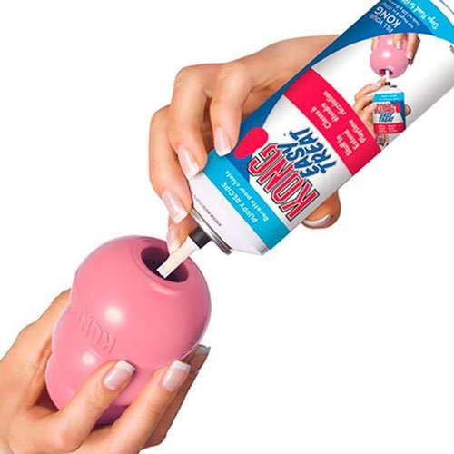 Kan brukes som leke uten fyll eller fylle med godbiter. Prøv f.eks. KONG Easy Treat Puppy eller KONG snacks puppy hundekjeks.