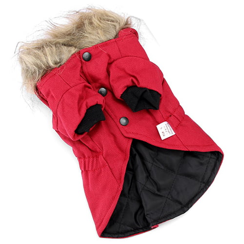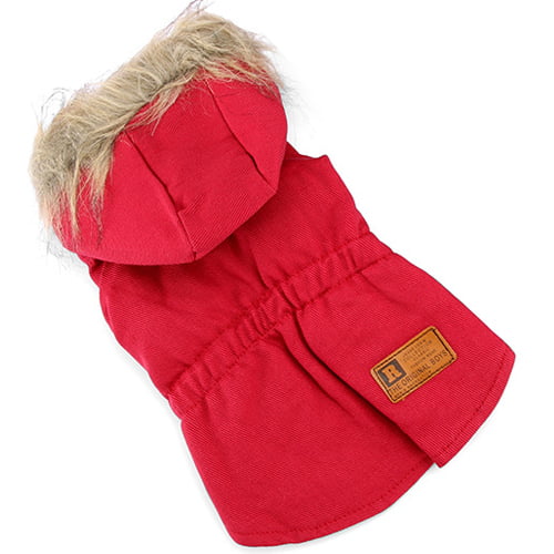 Hold hunden varm med en stilig, fôret parkas laget av denimlignende stoff med fuskepels på hetten.