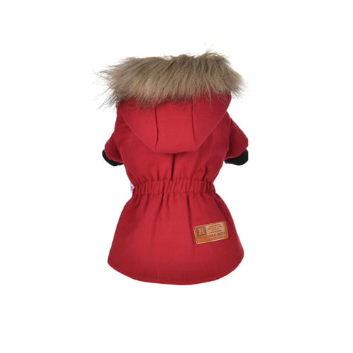 Hold hunden varm med en stilig, fôret parkas laget av denimlignende stoff med fuskepels på hetten, fra merket The Original Boys.