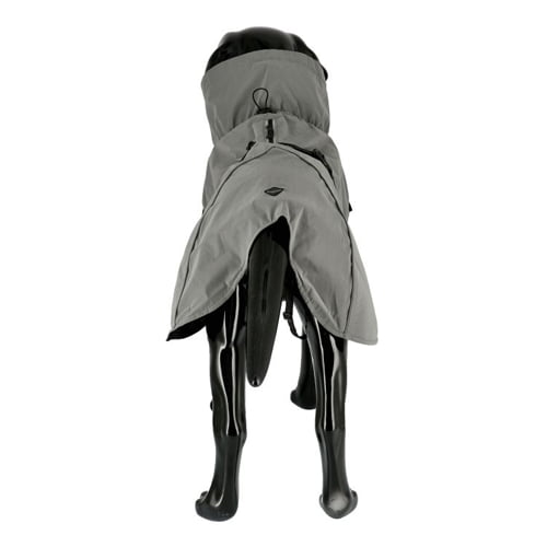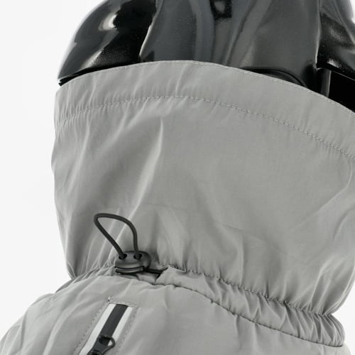 Beskytter mot regn, vind og kulde. Refleksdetaljer, justerbar halsåpning, krage og snøring samt en åpning på ryggen for sele.