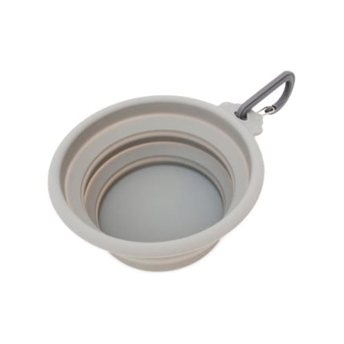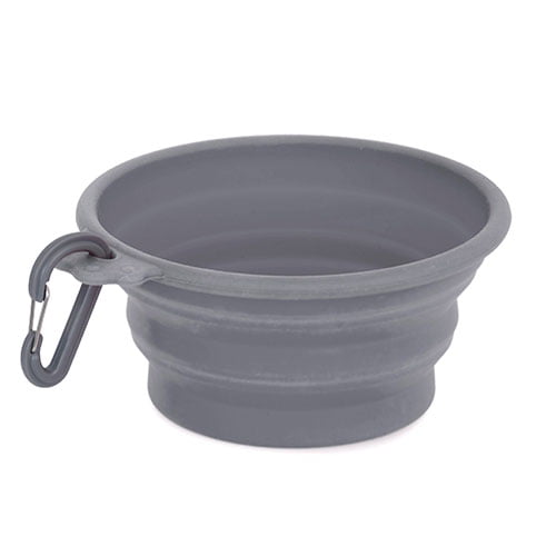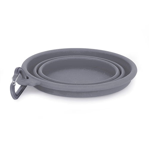 Sammenleggbar hundeskål av silikon. Praktisk å ha med på tur. Kan legges sammen og legges i ryggsekken eller festes i beltet e.l. så har du den lett tilgjengelig for vann- og matpauser.