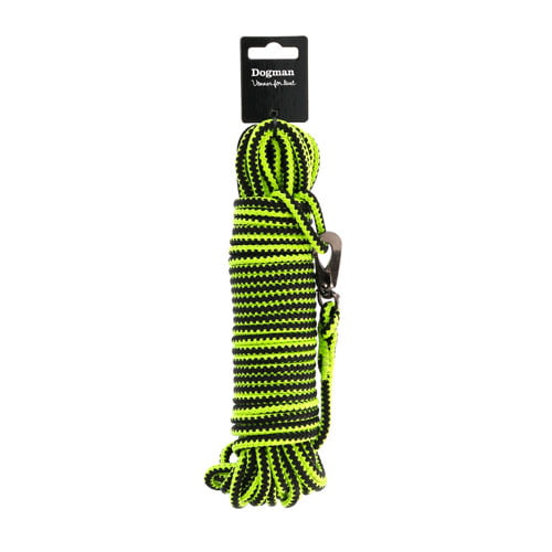 Praktisk flettet sporline med karabinkrok. Perfekt å bruke til trening, sporing og innkalling av ulike slag.
