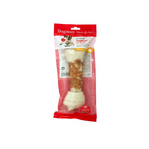 Smaksrikt tyggebein med surret kyllingstrimler.